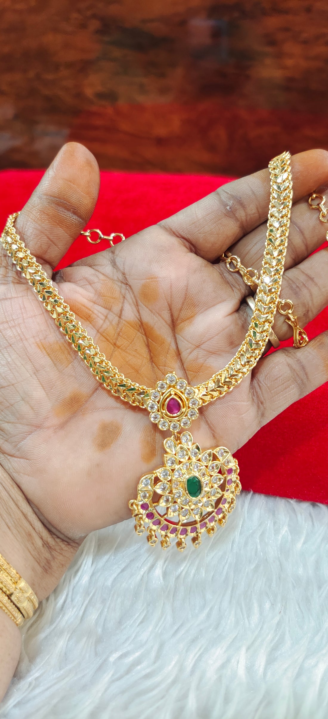 Our own customized design Panchaloham palakasaralu with rice pearls neck length